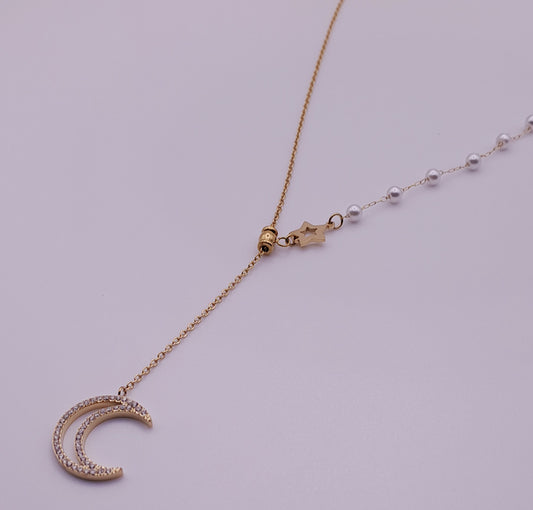 Colar com Pérolas e Pingente em Forma de Meia Lua