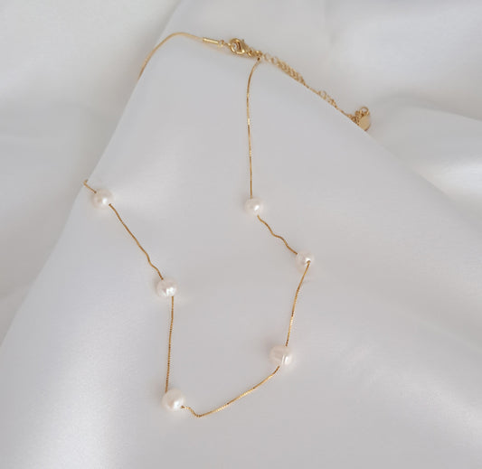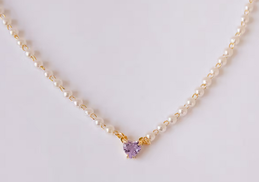 Colar Banhado a Ouro 18k com Coração de Cristais e Pérolas na Corrente