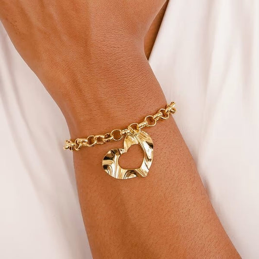 Pulseira com Elos Banhada a Ouro de 18k e Pingente em Forma de Coração