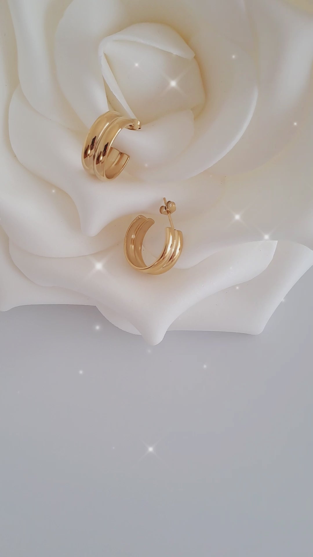 Leves, elegantes e intemporais, estas argolas douradas em aço inoxidável, são ideais para uma mulher moderna que gosta de ter acessórios versáteis para usar em diversas ocasiões com estilo e elegância.